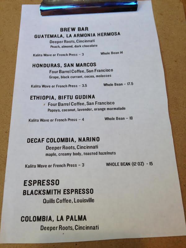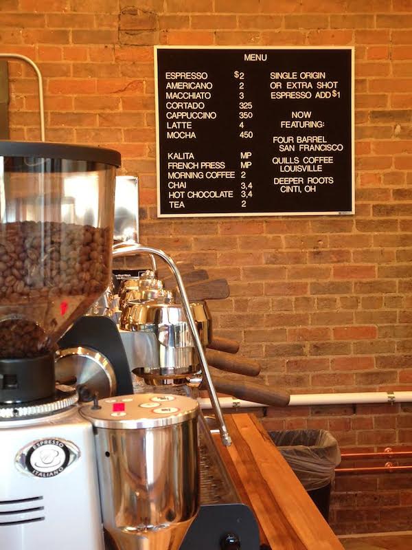 Our coffee partners are Deeper Roots locally (Cincinnati), our house espresso is our regional partner Quills Blacksmith Espresso (Louisville), and we work with a number of national roasters including Four Barrel, Madcap, Herkimer, Kuma, and Intelligentsia. Our milk comes from Hartzler Family Dairy in Wooster, Ohio.How would you describe the interior design vibe and how would you want a new customer to feel walking in?