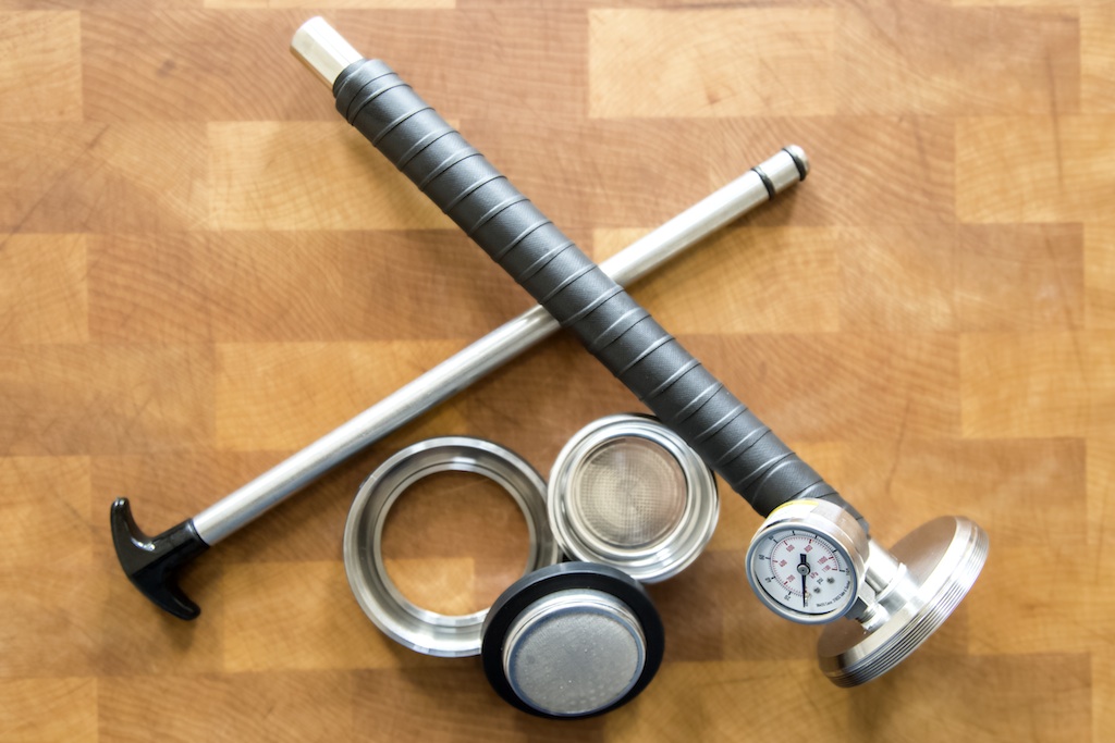portable manual espresso equipment. It resembles a bicycle pump but is